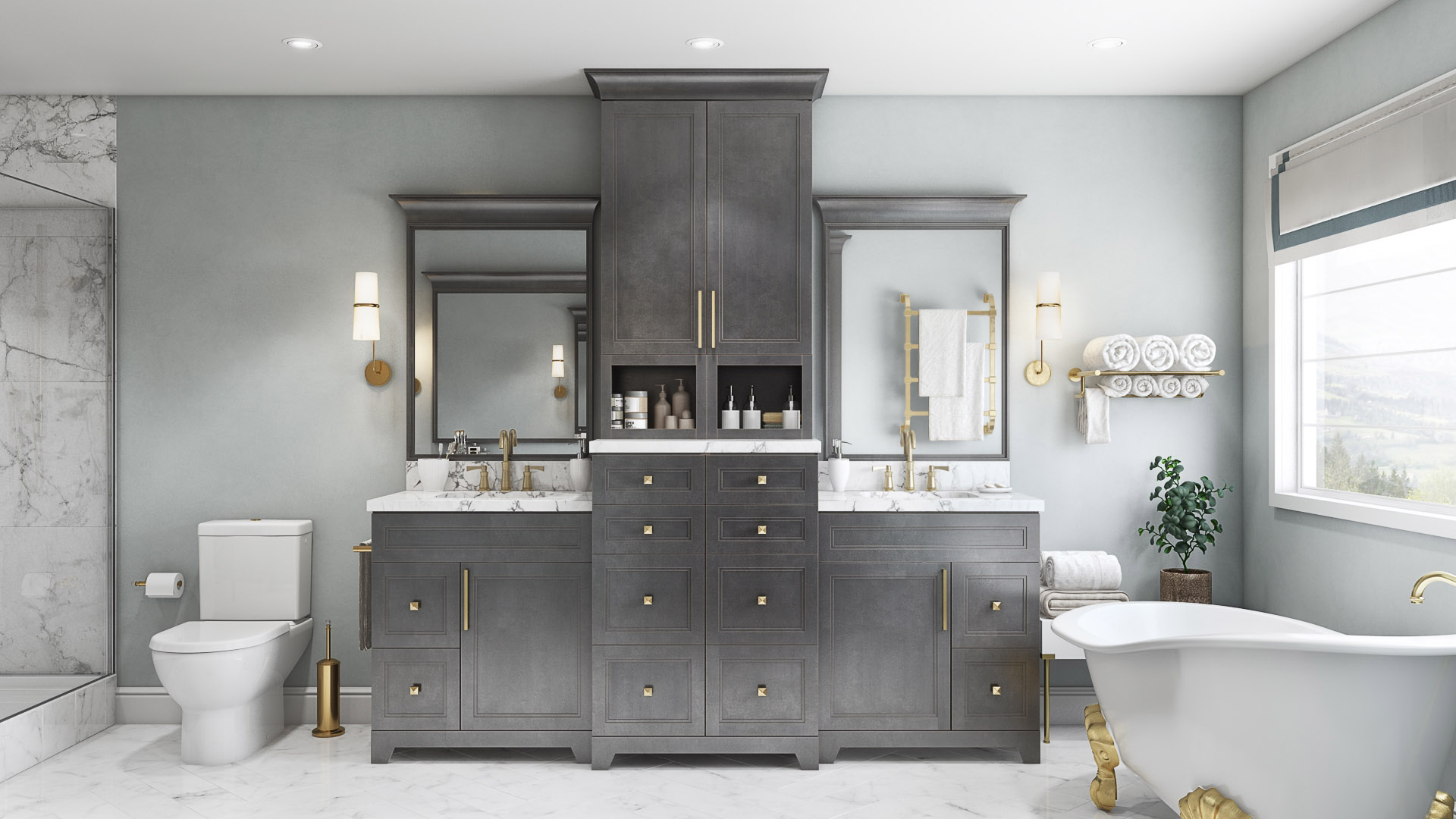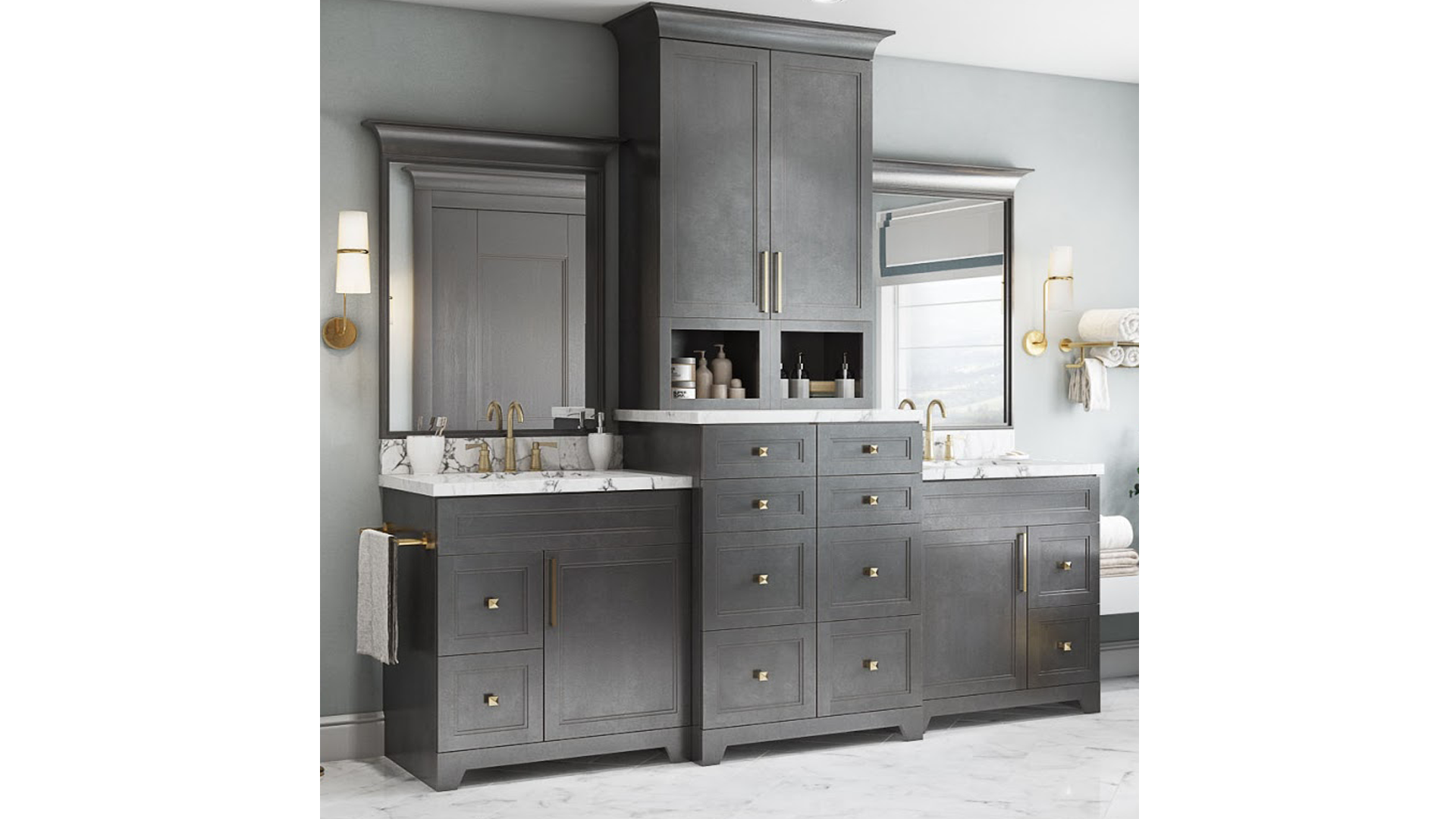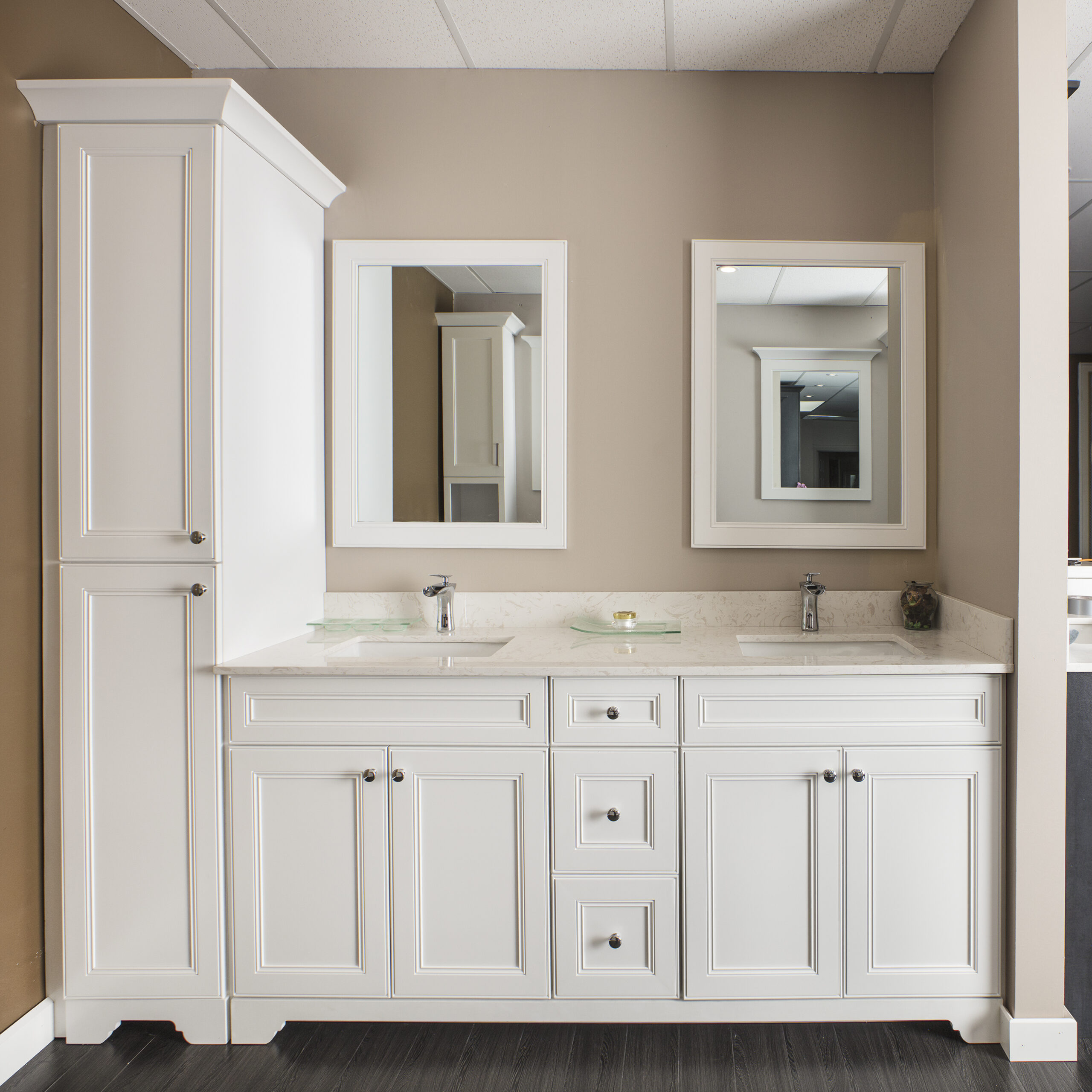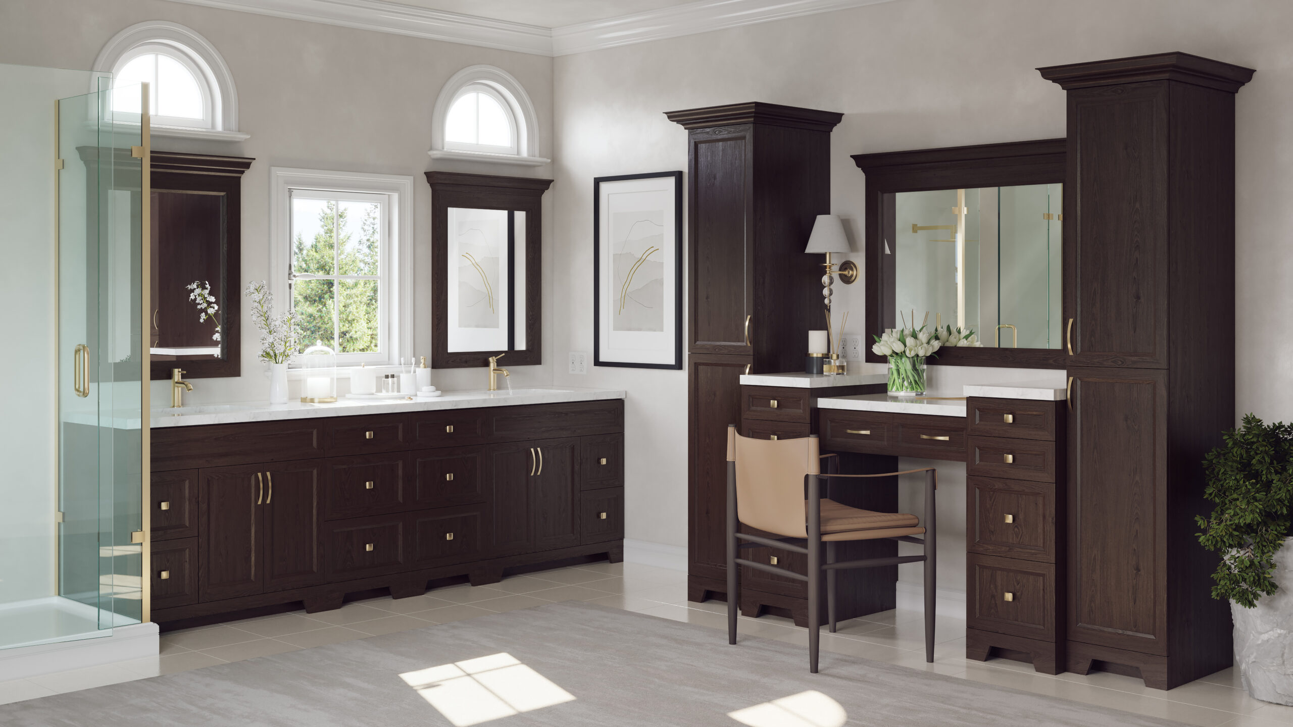 Traditional raised panel door style in stained walnut glazed finish. This line characterizes the old-fashioned sophistication. This is another timeless design best suited for a grand kitchen.